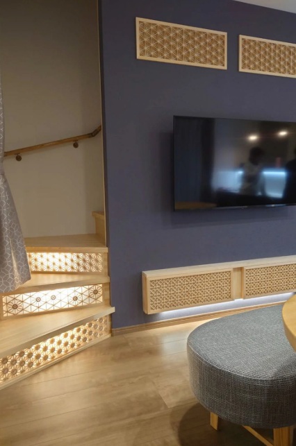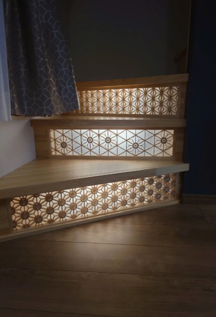 リビング階段をもっと特別に ― 組子デザインのアートケ込み「かぐや」