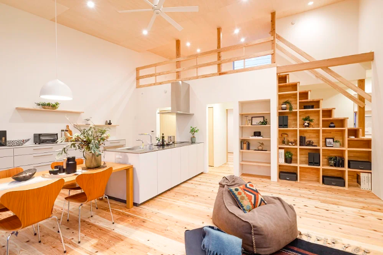 側桁(そくけた)がなく、階段下も何もないため、すっきりと軽やかな印象を与えてくれます。