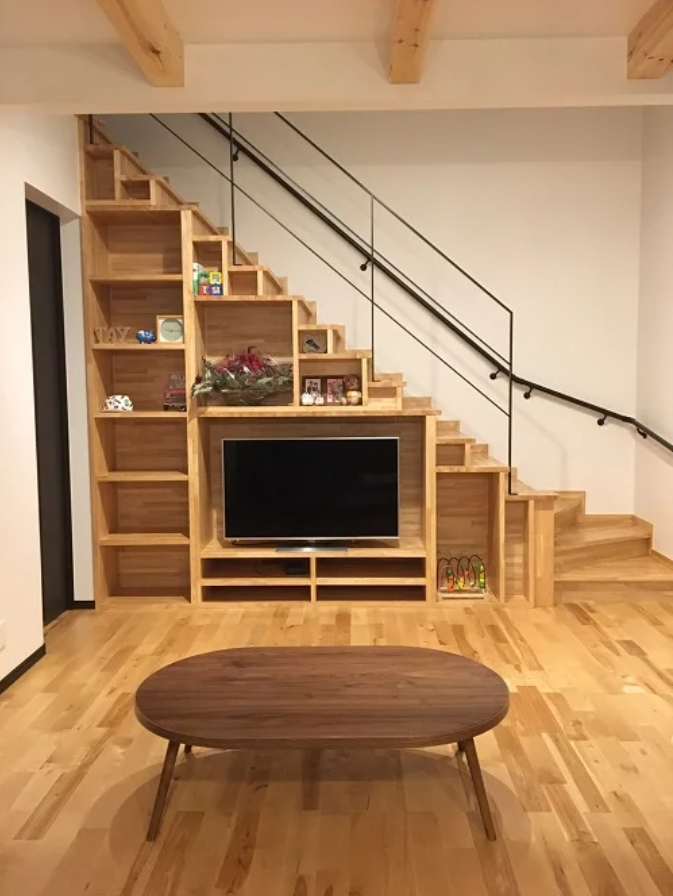 階段下をTVボードと一体化するスタイル。