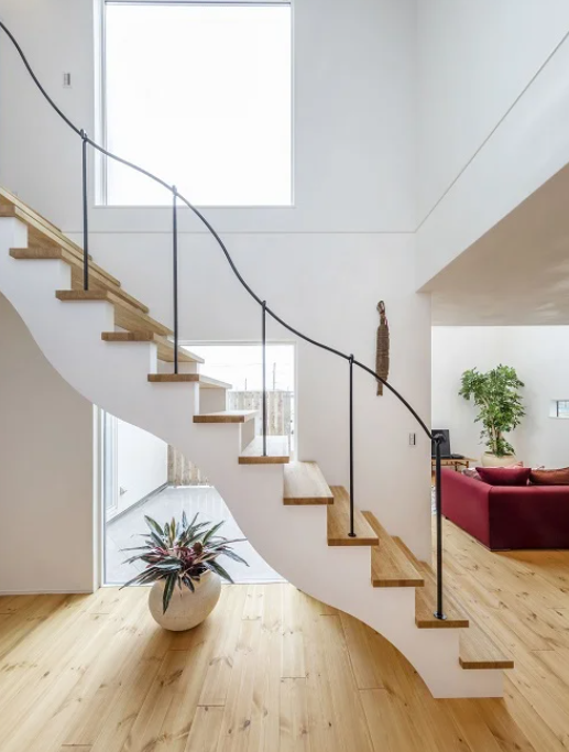「おしゃれ階段」である弊社「SURF」のサーフボード型段板や波の揺らめきをかたどった桁、「KIKORI」のモコモコ段板・モコモコ桁、そして「光彩」の複雑なシャクリ加工が施された段板も、すべてNCによって形づくられています。