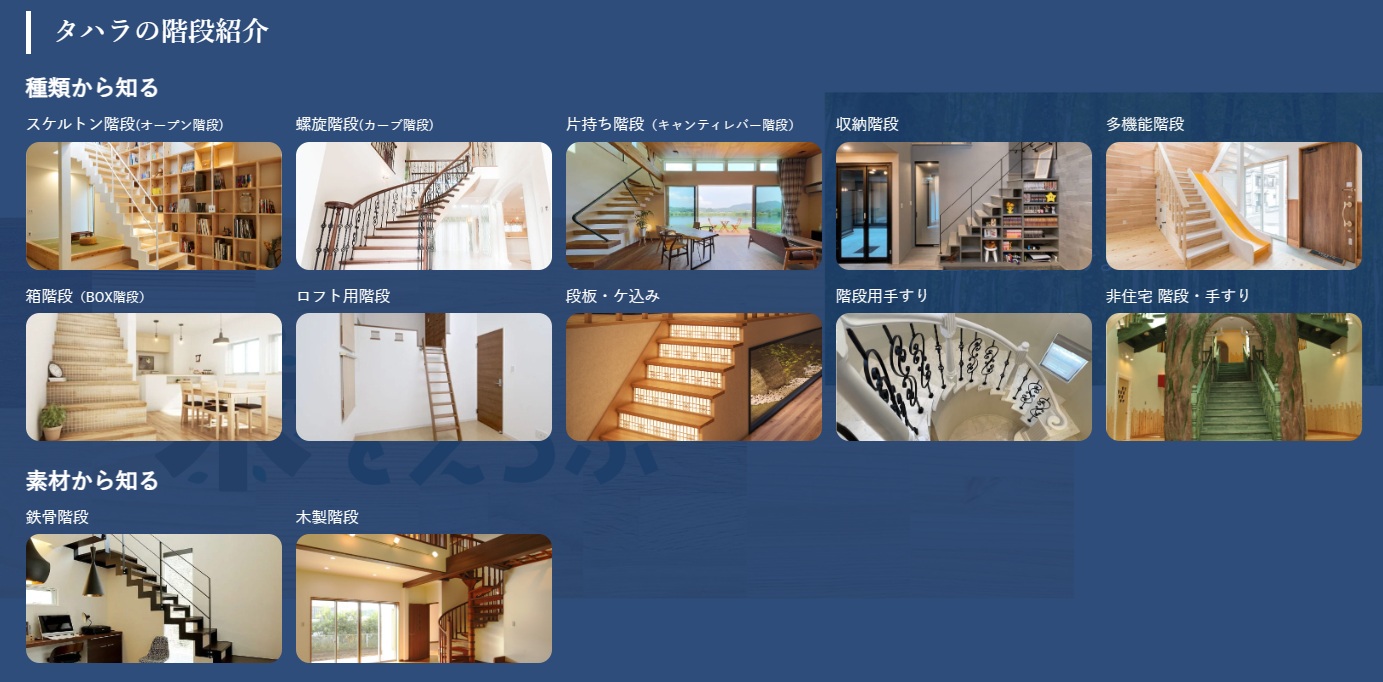 今回のリニューアルでは、たくさんの階段の中から理想のイメージを探しやすいように、